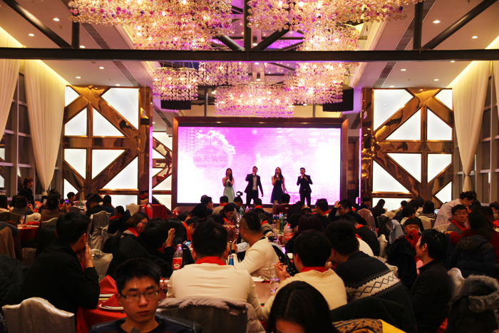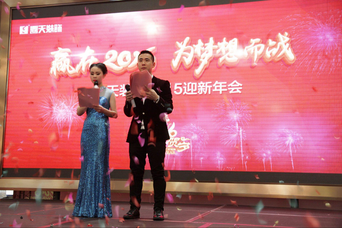1月28日,鼎天裝飾以 “贏在2016 為夢想而戰(zhàn)”為主題的2015年會暨迎新晚會在寧波文鼎璽悅大酒店隆重舉辦。年會當日,場內燈火輝煌,每個人的面孔都洋溢著熱情和喜悅。