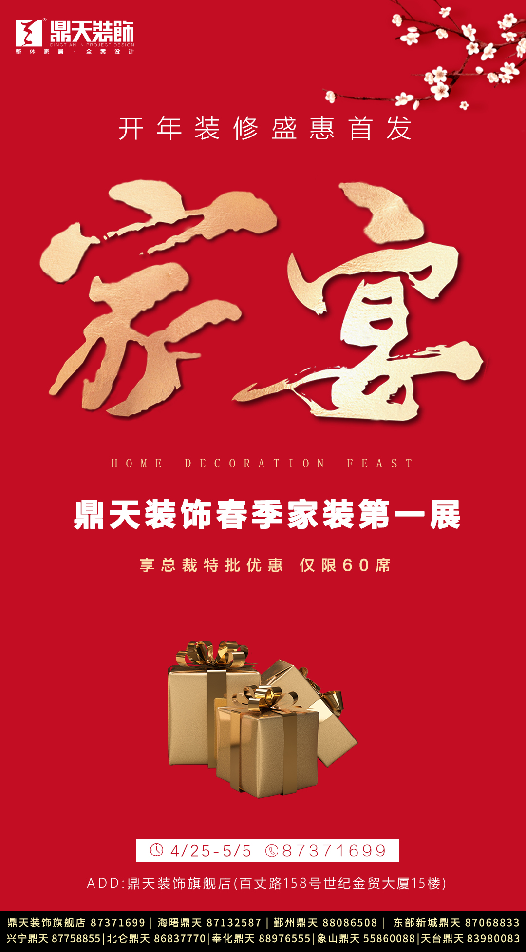 在家里待了三個(gè)月,是不是已經(jīng)延誤了不少生活大事?已過(guò)了四分之一的2020年,早該裝修設(shè)計(jì)的新家還原封沒(méi)動(dòng)?那現(xiàn)在該行動(dòng)了。4月25日,鼎天裝飾春季家裝博覽會(huì)重啟新生活。 享總裁特批優(yōu)惠,僅限60席 現(xiàn)在消費(fèi)有消費(fèi)券領(lǐng),鼎天裝飾則為廣大客戶(hù)準(zhǔn)備了總裁特批大惠,即60席成本價(jià)樣板房名額?,F(xiàn)場(chǎng)下定客戶(hù),享砸金蛋贏取價(jià)值6888元各種大禮,以及整點(diǎn)循環(huán)抽超級(jí)豪華家電禮等活動(dòng)。此外,還能領(lǐng)取5萬(wàn)元特供家具歡購(gòu)券,暢購(gòu)【佰麗家居美學(xué)實(shí)景體驗(yàn)館】旗下品牌家具及各類(lèi)軟飾產(chǎn)品。 2020年,二十一載品牌為您打造新生活 21年的家裝品牌意味著什么? 是服務(wù)過(guò)極為龐大的客戶(hù)群體,積淀的豐富的行業(yè)經(jīng)驗(yàn),和形成的嚴(yán)格管理體系:在綠地觀堂、望江府、新長(zhǎng)島、楓橋里、中山雋府、青秀瀾灣、碧玥府、三江觀邸、中梁壹號(hào)院、江灣城、銀泰城、蓮橋府、金茂悅、宏泰風(fēng)花樹(shù)、雅戈?duì)柮髦?、保利城等一個(gè)個(gè)住宅小區(qū)中,在東錢(qián)湖萬(wàn)金雷迪森度假酒店、維也納國(guó)際酒店等五星級(jí)酒店的裝修服務(wù)中,于家裝、工裝兩大領(lǐng)域不斷筑就精品案例,工藝品質(zhì)深受客戶(hù)廣泛認(rèn)可和肯定。 是強(qiáng)大的資源整合能力,擁有更多、更精準(zhǔn)的服務(wù)能力,在極具深度和廣度的服務(wù)上為客戶(hù)創(chuàng)造更大價(jià)值:從強(qiáng)大的設(shè)計(jì)、施工能力,到后期軟裝設(shè)計(jì)與配套,及全屋定制式的精裝套餐產(chǎn)品,實(shí)現(xiàn)了整體規(guī)劃設(shè)計(jì)與施工、設(shè)備、主材、家具、配飾的私屬定制一站式服務(wù)。 在精裝房成為買(mǎi)房標(biāo)配的當(dāng)下,鼎天裝飾的精裝房改造服務(wù)開(kāi)始引領(lǐng)行業(yè),在江山萬(wàn)里等精裝修小區(qū)中,不斷滿足客戶(hù)個(gè)性和品位的生活需求。 輕奢風(fēng),引領(lǐng)2020生活時(shí)尚 2020年,前衛(wèi)、時(shí)尚的輕奢風(fēng)將更受追捧。此次活動(dòng),除了美艷1號(hào)、美艷5號(hào)、美艷8號(hào)、美艷999,及“科技美宅”美艷9號(hào)等系列精裝套餐,鼎天裝飾新增主打輕奢風(fēng)格的美艷7號(hào)產(chǎn)品,引領(lǐng)時(shí)尚潮流,讓業(yè)主用更少的錢(qián)享受到更高檔的裝修效果。業(yè)主將感受到美艷7號(hào)融合現(xiàn)代和古典的設(shè)計(jì)風(fēng)格,在充滿高級(jí)感的中性色調(diào)和極具質(zhì)感的軟飾中體驗(yàn)典雅奢華,并于溫馨舒適的環(huán)境中享受放松的居家生活。 特別預(yù)告: 4月25日(周六),鼎天裝飾【春季家裝第一展】在鼎天旗艦店舉辦。現(xiàn)場(chǎng)享總裁特批優(yōu)惠,僅限60席樣板房成本價(jià)裝修。鼎天至尊工作室、金牌施工團(tuán)隊(duì)聯(lián)手打造五星級(jí)樣板工程。 鼎天旗艦店地址:百丈路158號(hào)世紀(jì)金貿(mào)大廈15層樣板房報(bào)名熱線:87371629 貴賓熱線:87371699 |