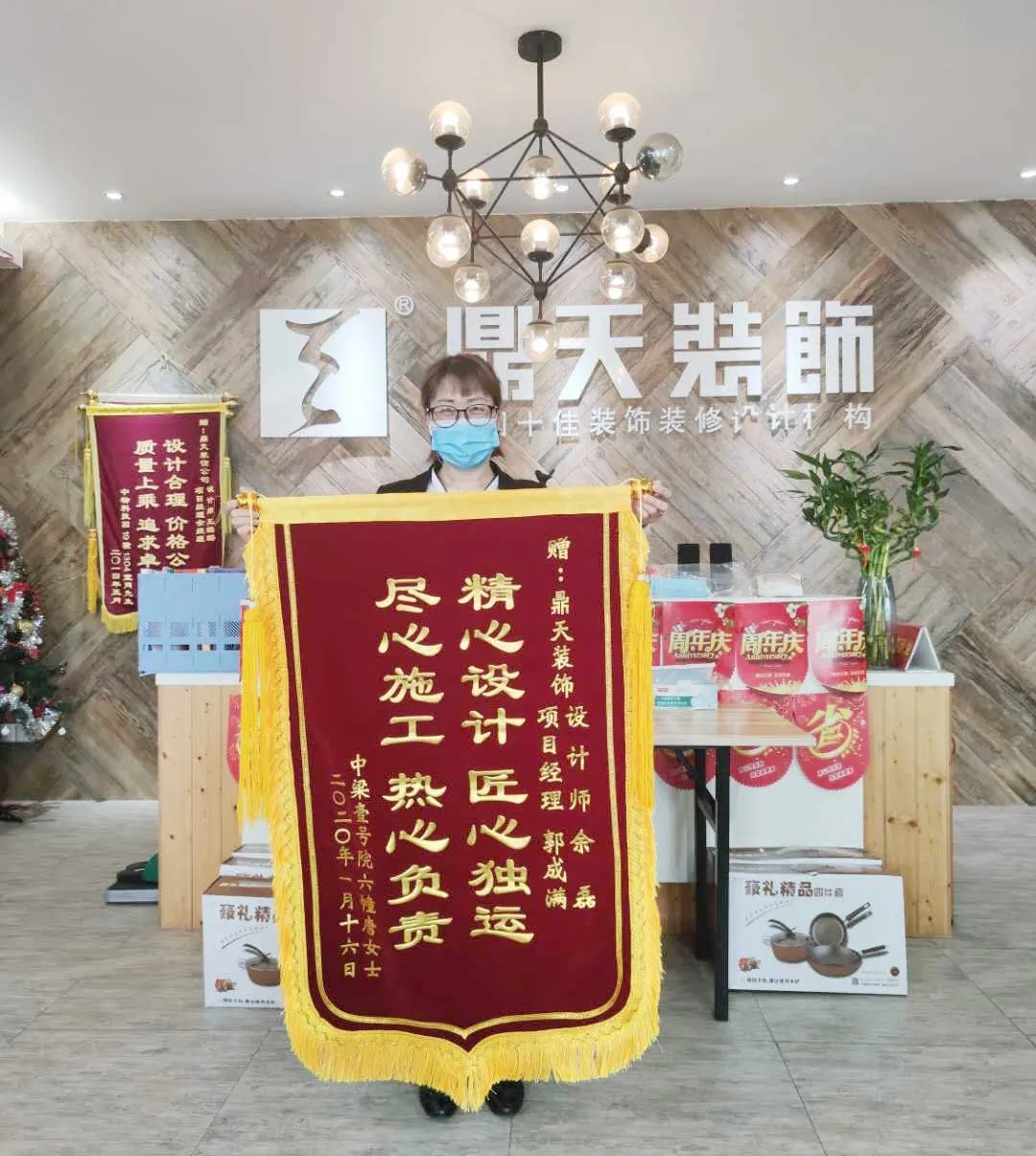 在整個裝修過程中,業(yè)主感受到了鼎天高度嚴謹?shù)墓ぷ鲬B(tài)度,正是一直遵循著“施工精湛,服務優(yōu)質(zhì)”的企業(yè)文化的原則,始終嚴于律己,對待工作不懈怠,才能在裝修過程中與業(yè)主相互成就,該面錦旗就是對鼎天高品質(zhì)家居裝修最好的肯定。