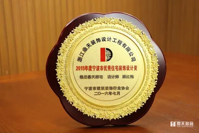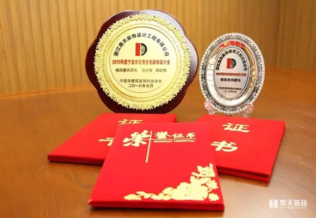經(jīng)寧波市建筑裝飾行業(yè)協(xié)會公開、公平、公正的原則,鼎天裝飾再獲殊榮,評得“2015年度寧波市優(yōu)秀住宅裝飾設(shè)計獎”、“2015年度寧波市優(yōu)秀住宅裝飾工程獎”、“2015年度寧波市建筑裝飾裝修施工企業(yè)優(yōu)秀項目經(jīng)理”等榮譽獎牌及榮譽證書。