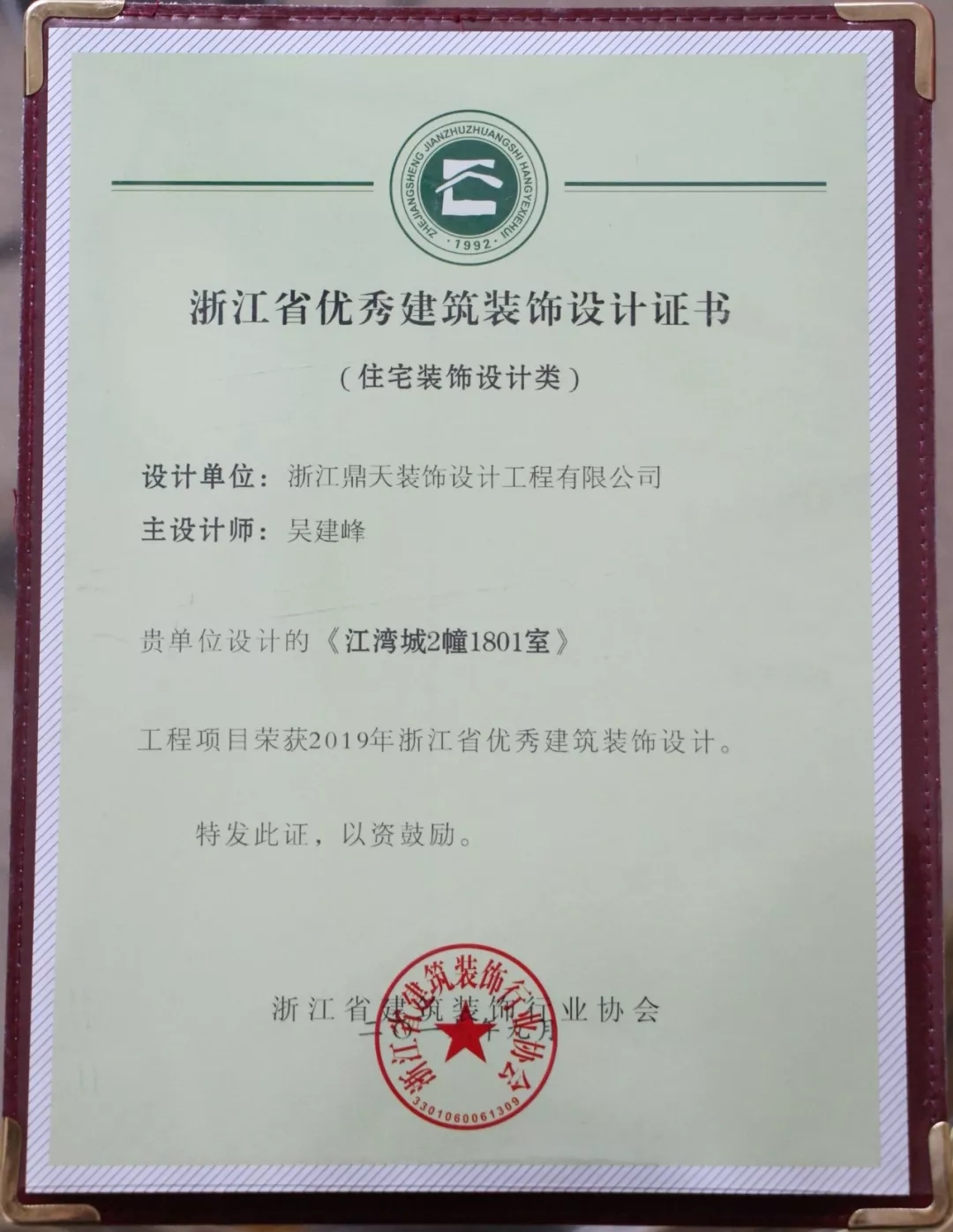 ▲2019年度浙江省優(yōu)秀建筑裝飾設(shè)計獎杯
